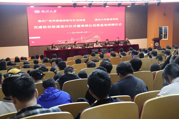 签约仪式后,双方党支部随即举行第一场联建活动——《草根红拍客》基地授牌仪式。鹿城区委宣传部朱丽华、温州广电传媒集团陈淼两位领导亲自授牌,并宣布温大小宝影院 成为我市第八家、高校首家《草根红拍客》基地。朱丽华认为,该基地的建成将有利于温大小宝影院 第一时间向社会展示办学成果,为温州“数学家之乡”品牌建设增色。随后,《草根红拍客》栏目编导陈品熹开设了《融媒体时代如何成为一名优秀的拍客》专题讲座,指导温大小宝影院 师生利用手机工具讲好温州“数学家之乡”的故事。
