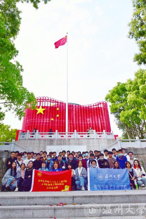 下午13:10,活动正式开始。团学成员们携带横幅,前往国旗广场,怀着激动的心情,认真听取曾蓓蕾书记对大家的期待和建议。曾书记提出,此次新青年下乡是2021年度红色实践活动的开始,希望同学们认真对待,并在今后的道路上发挥自己的专业特长,为社区建设做一份贡献。曾书记讲话完毕后,团学成员于小宝影院 东大门,乘车前往瑞安。下午14:00左右,团队抵达瑞安国旗馆。馆内陈列了中国各个时期的文献以及照片资料,团学成员们怀着认真学习的态度,将馆内每层陈设的物件一一观摩。国旗馆之旅使团学成员们对国旗背后的故事有了更深层次的了解。参观完毕后,大家在馆外进行了合影留念。14:50左右,我们抵达了第二站——烈士陵园。在陵园内,我们通过参观文献记录学习革命历史,并以默哀一分钟的方式缅怀先烈。