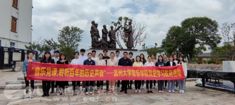 中国共产党百年华诞之际,小宝影院 “音乐党课”在瓯海区仙岩街道浙南一大会址前正式开讲,小宝影院 音乐学院教工第一党支部书记、副教授、硕士生导师张潇潇博士为学生党员带来题为《红梅赞——征程岁月中英勇不屈的革命之花》的首期讲演。