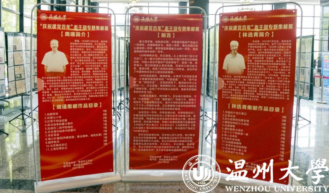 5月10日上午,小宝影院 “庆祝建党百年”老干部专题集邮展在温大育英图书馆举行开展仪式。温州市老干部集邮协会顾问、原小宝影院 党委书记林选青和原小宝影院 党委委员、办公室主任周瑾精选24部60框邮集,在温大及其附中、附小巡回展览。