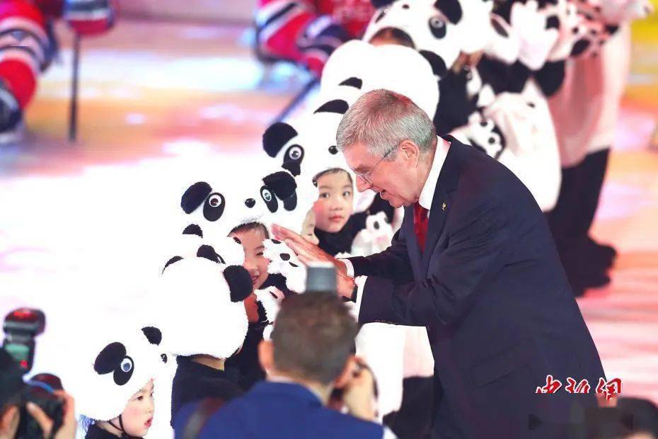资料图:2020年9月17日,北京2022年冬奥会吉祥物和冬残奥会吉祥物发布活动在北京举行。图为国际奥委会主席巴赫在发布活动上与小演员互动。中新社记者 富田 摄