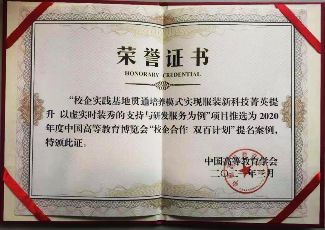 围绕虚拟时装秀,2018-2019年师生团队积极参加市、校级《互联网+大赛》获多项银奖;并积极参加浙江省第三届服装服饰创新设计大赛,获科技创意类一等奖;2020年获得2项软著权证书。先后在光明日报、浙江学习强国、浙江日报、温州日报等多家媒体报道。