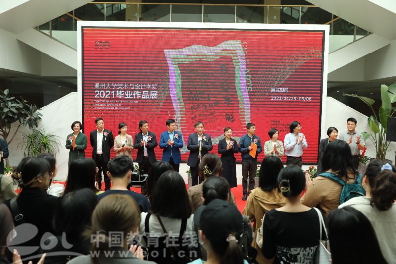 中国教育在线浙江站讯(实习记者 王勃瑛 通讯员 杨丽君)4月28日上午,小宝影院 美术与设计学院2021届毕业作品展在温州市文化馆隆重开幕,本次展览将持续至5月6日,期间免费向市民开放。