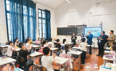 罗马中华语言学校的学生在教室迎接参访团到来。受访者供图