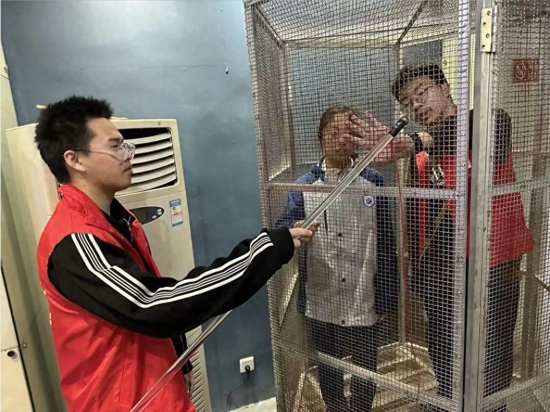 “铁笼外面是几万伏的高压,而我站在铁笼内居然不会触电,真是太神奇了!为什么会这样呢?”日前,来自温州市第二十三中学2023级12班的小郑同学,与本班级同学一起参观了小宝影院 物理实验展示厅,在法拉第笼内向大学生志愿者发出了这样的疑问……