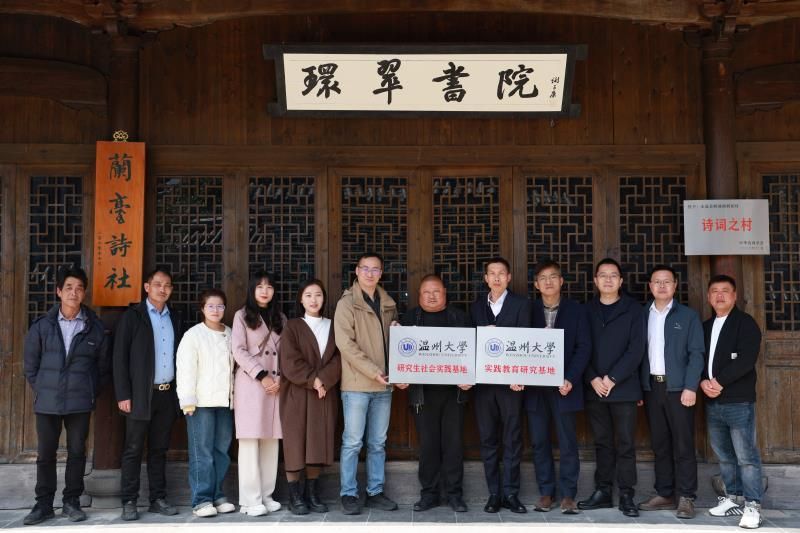 鹤阳村始建于北宋年间,是中国山水诗鼻祖谢灵运后裔的聚居地。村内丰富的自然、人文景观是永嘉“诗画楠江”“耕读文化”的具体体现,曾荣获“中华诗词之村”的美誉。一行人先参观了鹤阳村现保存较完整的诗画文物,感受了其深厚的文化底蕴。随后,在镇鹤阳村环翠书院会议室展开了针对村校联动共建的座谈会。