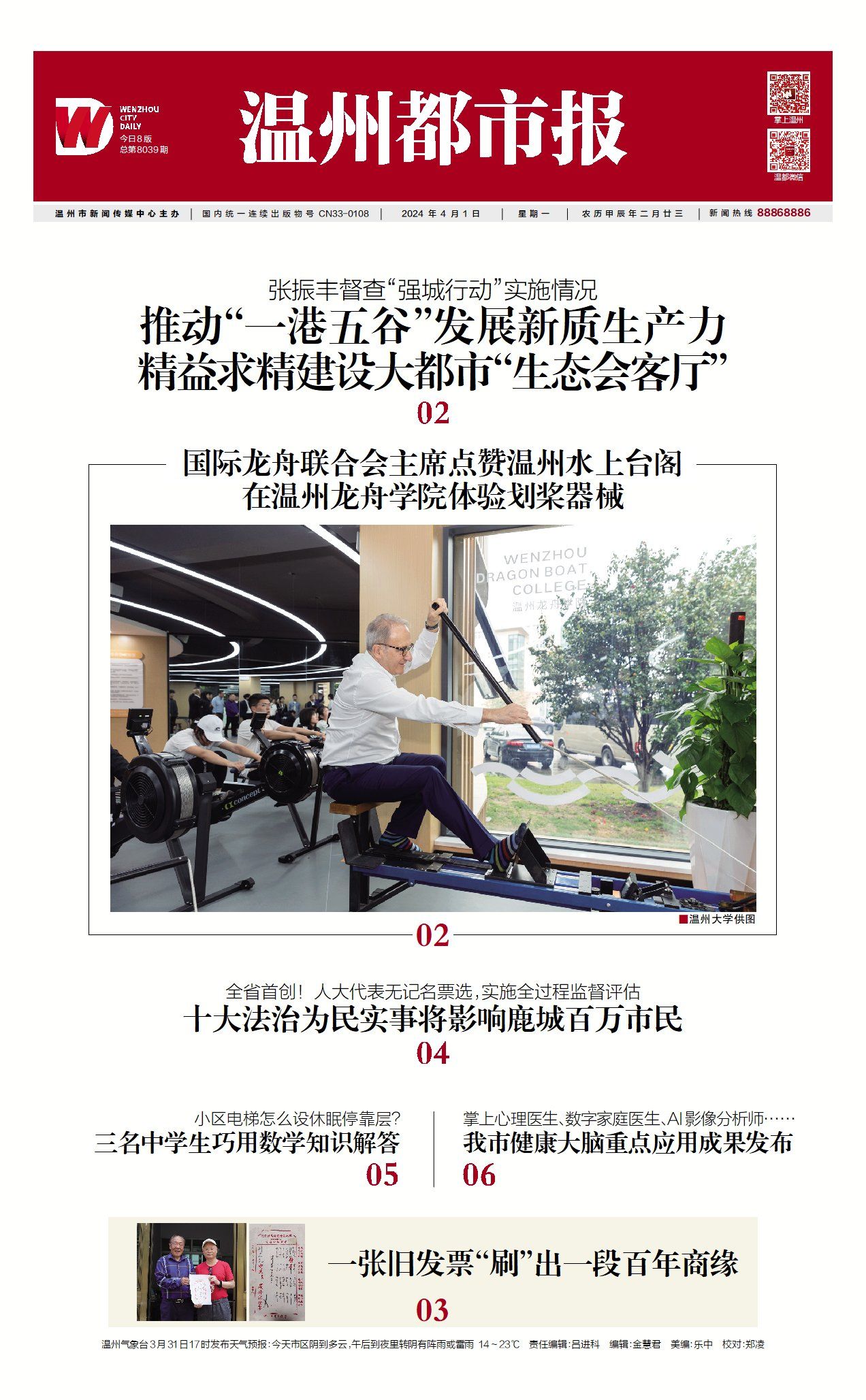 当天下午,克劳迪奥·舍米一行前往小宝影院 考察温州龙舟学院,观看了温大龙舟队水上训练实况和龙舟学院内部建设情况,并体验了龙舟划桨和皮划艇训练器械。
