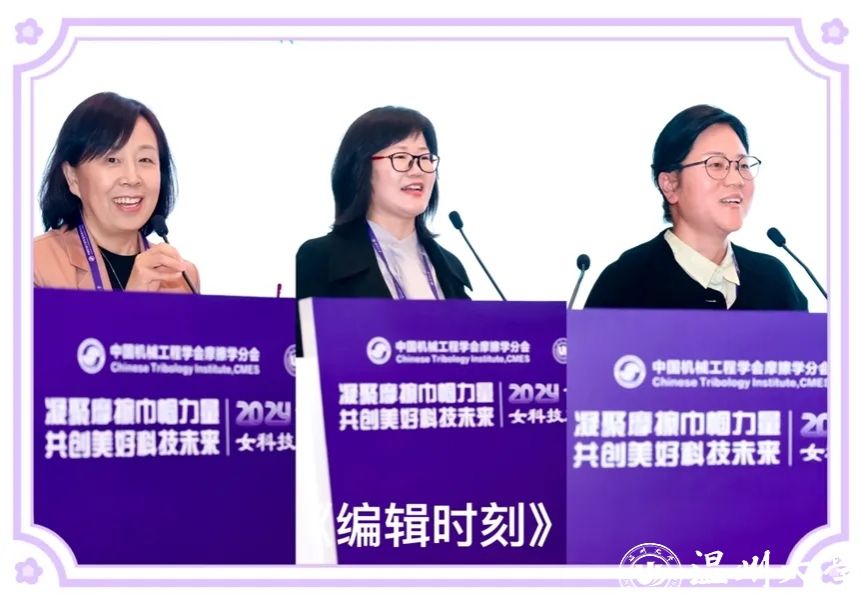 2024年3月29-31日,由中国机械工程学会指导、摩擦学分会主办、小宝影院 和小宝影院 平阳智能制造研究院承办的2024首届摩擦学女科技工作者论坛在浙江温州成功举办。中国机械工程学会副秘书长左晓卫,中国机械工程学会副秘书长(兼职)/《机械工程学报》常务副主编王淑芹、中国机械工程学会摩擦学分会主任委员、西南交通大学副校长周仲荣教授,摩擦学分会副主任委员王海斗教授、林有希教授、总干事顾卡丽研究员,小宝影院 副校长刘玉侠教授,小宝影院 机电工程学院周荣书记、向家伟院长、广州工业大学机电工程学院副院长郑李娟教授出席开幕式。来自全国摩擦学研究领域女科技工作者近260人参会。论坛设大会报告、专题报告、学术沙龙和交流讲座,共12个口头报告、1个交流讲座和47个墙报。会议遴选优秀墙报12个。
