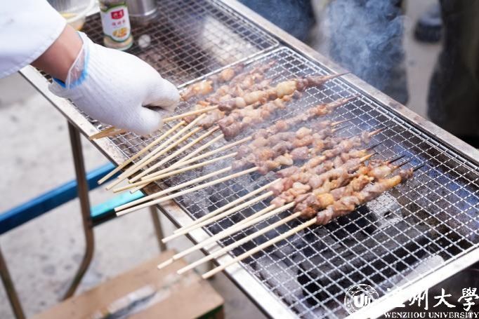 美食节上,A2青缘园餐厅准备了多种美食供师生免费享用。温州特色小吃灯盏糕、永嘉麦饼,风味小吃麻辣小龙虾、烧烤和各种水果都不间断供应,现场还制作长达5米的巨型蛋糕庆祝活动的举行,各路美食佳肴齐聚一堂,主打一个“心满意足”。