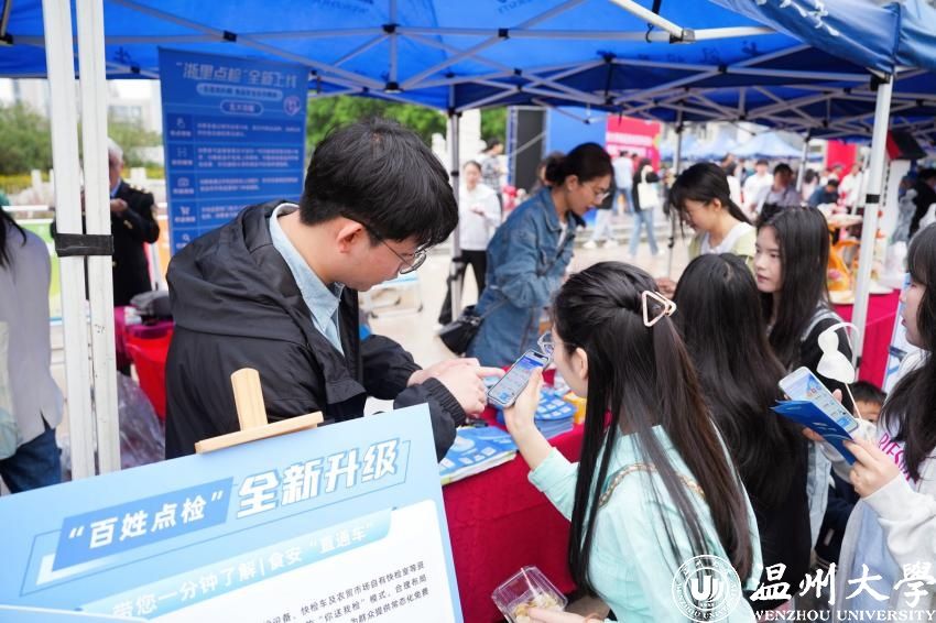 食品安全宣传活动也是今日重要主题之一,当日在主持人的引领下,多位师生参与了食品安全快检活动。众多同学在宣传点工作人员的指导下体验了“百姓点检”支付宝小程序。现场扫码食品安全科普知识有奖问答更是掀起了活动的高潮,参与度再创新高。