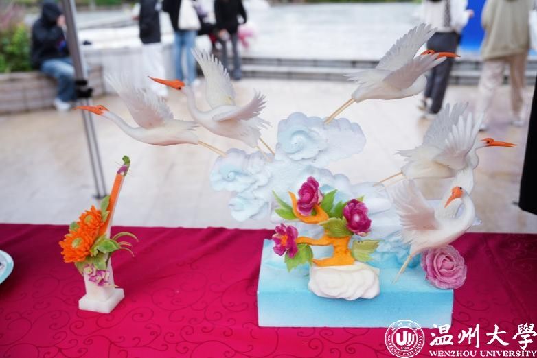 活动现场还有食品雕刻大师当堂雕刻,展示精湛食品雕刻技艺。牡丹花鸟、凤凰展翅、白鹤献瑞……普普通通的瓜果蔬菜在食雕大师的手下,转眼间就成了一件件美轮美奂、栩栩如生的艺术品。