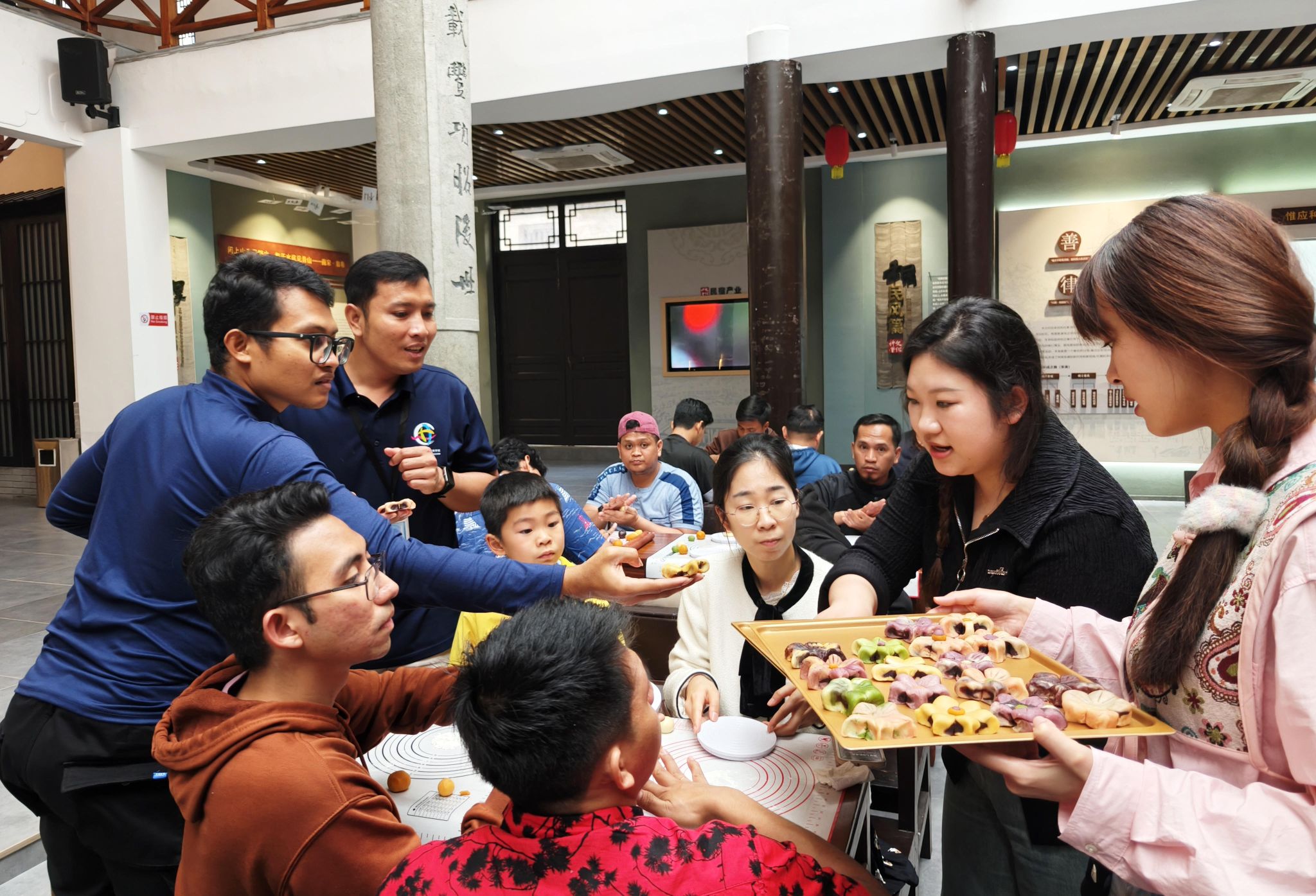 学员们在水云村文化礼堂学习体验宋韵酥点制作