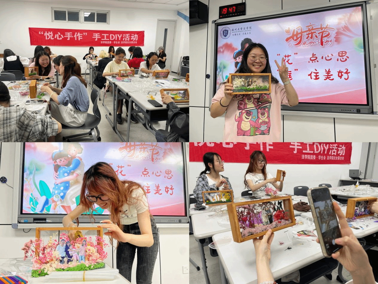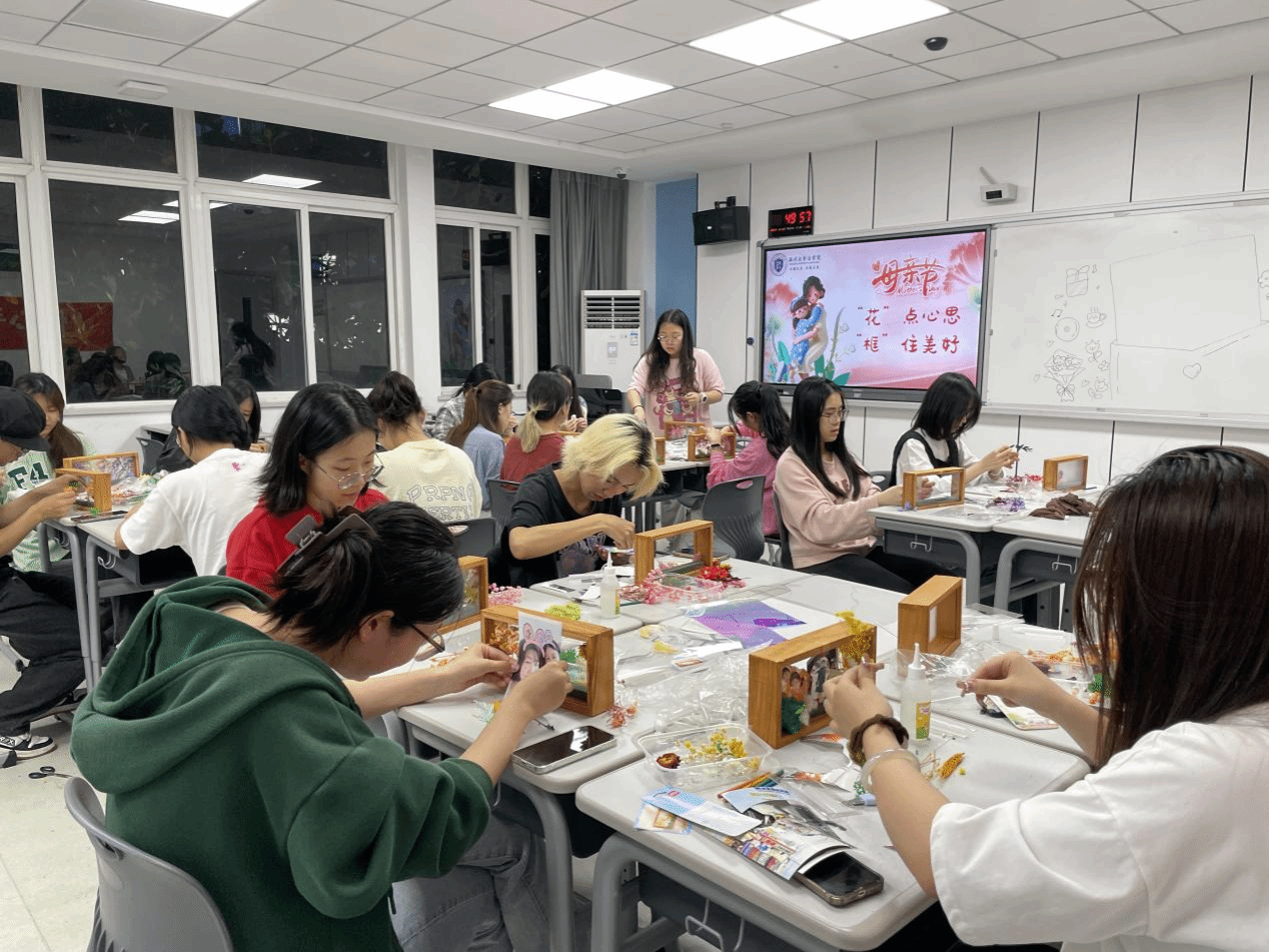 五月浅夏,岁月安然。这是一个深情的季节,所有与爱有关的事物都在发芽。母亲节,亦在这温暖的月份里欣然而至。2024年母亲节来临之际,小宝影院 法学院开展了“‘花’点心思,‘框’住美好”DIY活动。伴着悠扬的乐曲,同学们纷纷拿起面前的材料进行创作。