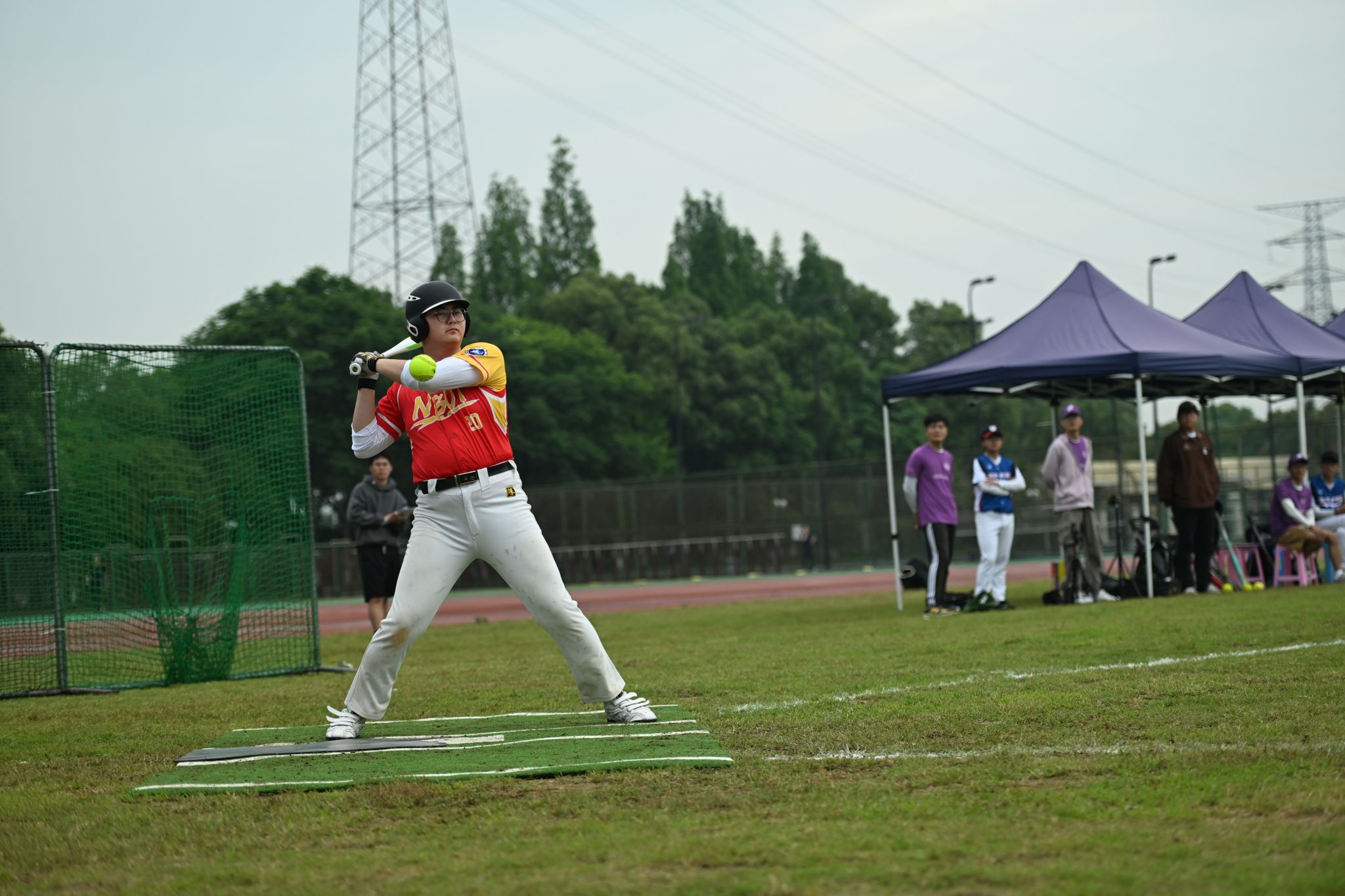 比赛场上,抛球选手熟练地将垒球从手中抛出,其他队员专心致志做好防守工作。对手站在接球区精准判断落球点,时刻准备着挥棒击球。场下替补队员高声呐喊,为赛场上的队友加油助威,教练则在指挥区内给予指导。