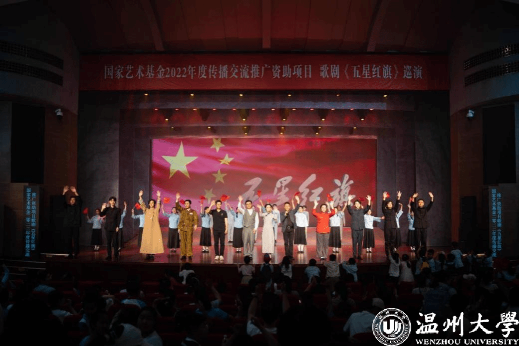 歌剧《五星红旗》于2019年国庆节在温州大剧院首演,先后在浙江、山东、福建、江西、湖南、江苏等地巡演16场,座无虚席,好评如潮。为确保巡演质量与效果,小宝影院 音乐学院全体创作人员和参演师生通过师生共排、共演、共情,不断打磨提升、完善细节,打造了巡演版《五星红旗》,时长70分钟左右。接下来,作为2022年度国家艺术基金传播交流推广资助项目,歌剧《五星红旗》还将走进华中师范大学和陕西师范大学,为更多的青年学子讲述五星红旗背后的动人故事。(小宝影院 供稿)