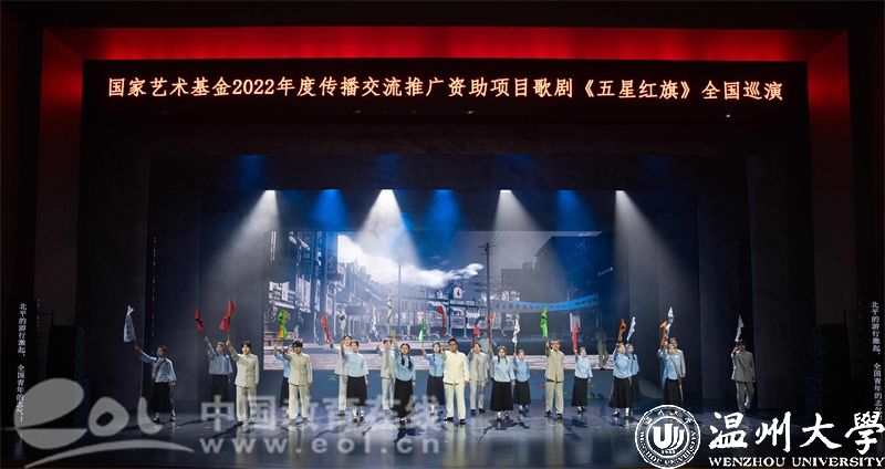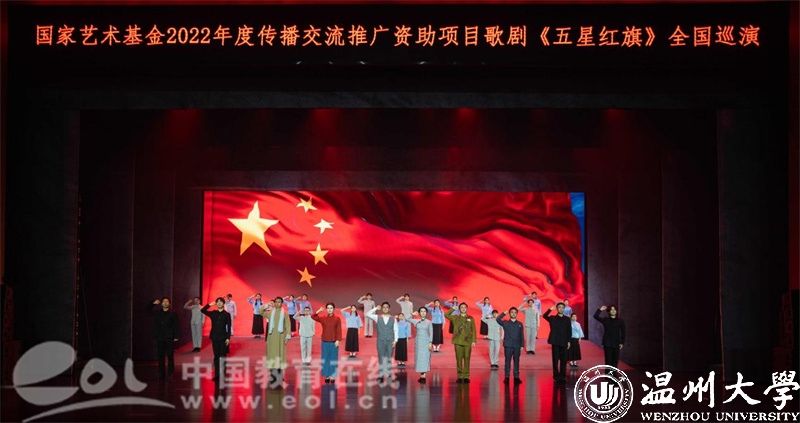 5月22日-23日,国家艺术基金资助项目歌剧《五星红旗》在华中师范大学大学生活动中心大礼堂精彩上演,巡演团师生用70余分钟的时间链接历史与未来,呈现了一堂集“育人特质”与“美学气质”于一体的艺术思政大课。华中师范大学党委副书记陈迪明、小宝影院 党委副书记庄兴忠、华中师范大学师生代表及武汉市温州商会温商企业家代表等2500余人现场观看演出。