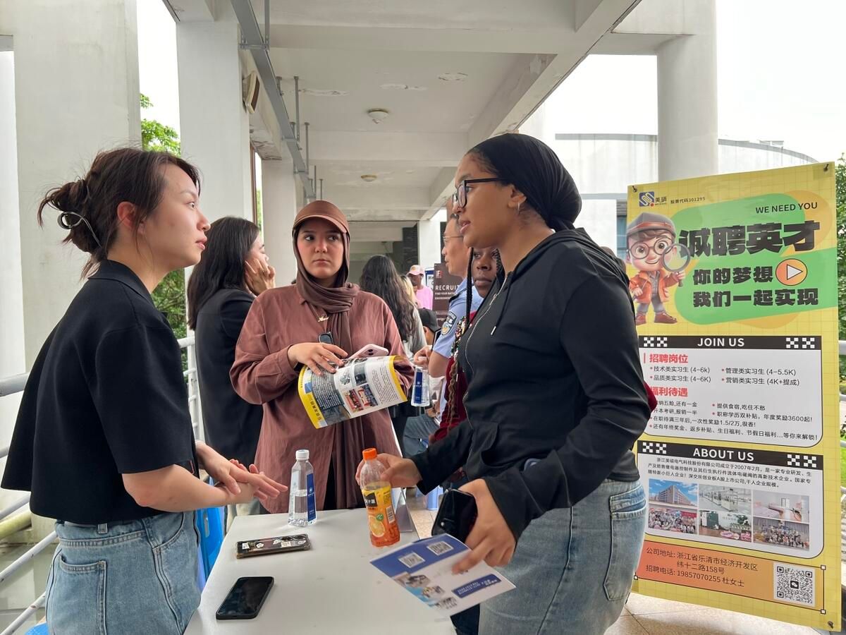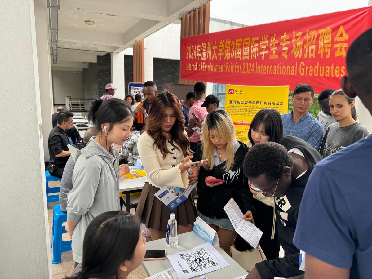 本次招聘会以“校企携手,共启国际未来”为主题,还吸引了浙江美硕电气科技股份有限公司、江苏易来德实业发展有限公司、温州市海外传播中心等10余家用人单位。招聘会现场气氛热烈,国际学生们满怀期待地穿梭在各个招聘展位之间,仔细了解企业的详细信息和岗位要求;企业招聘人员也热情地向学生们介绍公司的文化、发展前景和福利待遇等,双方积极互动,交流融洽。
