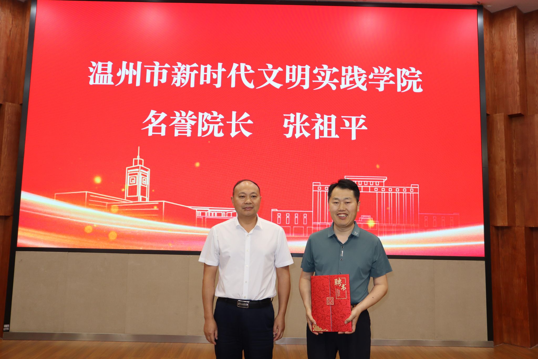 活动现场聘请了上海海洋大学新时代文明实践与志愿服务研究中心常务副主任张祖平教授为温州市新时代文明实践学院名誉院长。