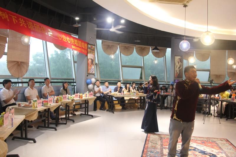 夜幕降临,晚上的“榕·宴团圆”庆祝活动更是精彩纷呈。在热闹的长桌宴上,维吾尔族、藏族、蒙古族、回族、畲族等50余名少数民族学生与领导嘉宾、老师们围坐一圈,他们身着鲜艳的少数民族服饰,分享各民族特色美食、一起畅谈家乡民族风俗。来自不同民族的学生代表身着节日盛装,纷纷走上舞台,用优美动人的民族特色舞蹈和悠扬婉转的歌声,向在场师生们展示了多元文化的魅力。现场气氛热烈而温馨。来自藏族的桑宗同学感慨道“今天的活动让我感受到了家一般的温暖,作为新时代青年,让我们像石榴籽一样紧紧相依、紧密相连,共同绽放出属于我们色彩!”