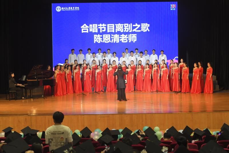 现场,毕业生代表用鲜花致敬辛勤付出的教师,瓯乐合唱团以《离别之歌》演绎回忆与未来;全体师生共同唱响《小宝影院 校歌》,祝愿扬帆再起航。