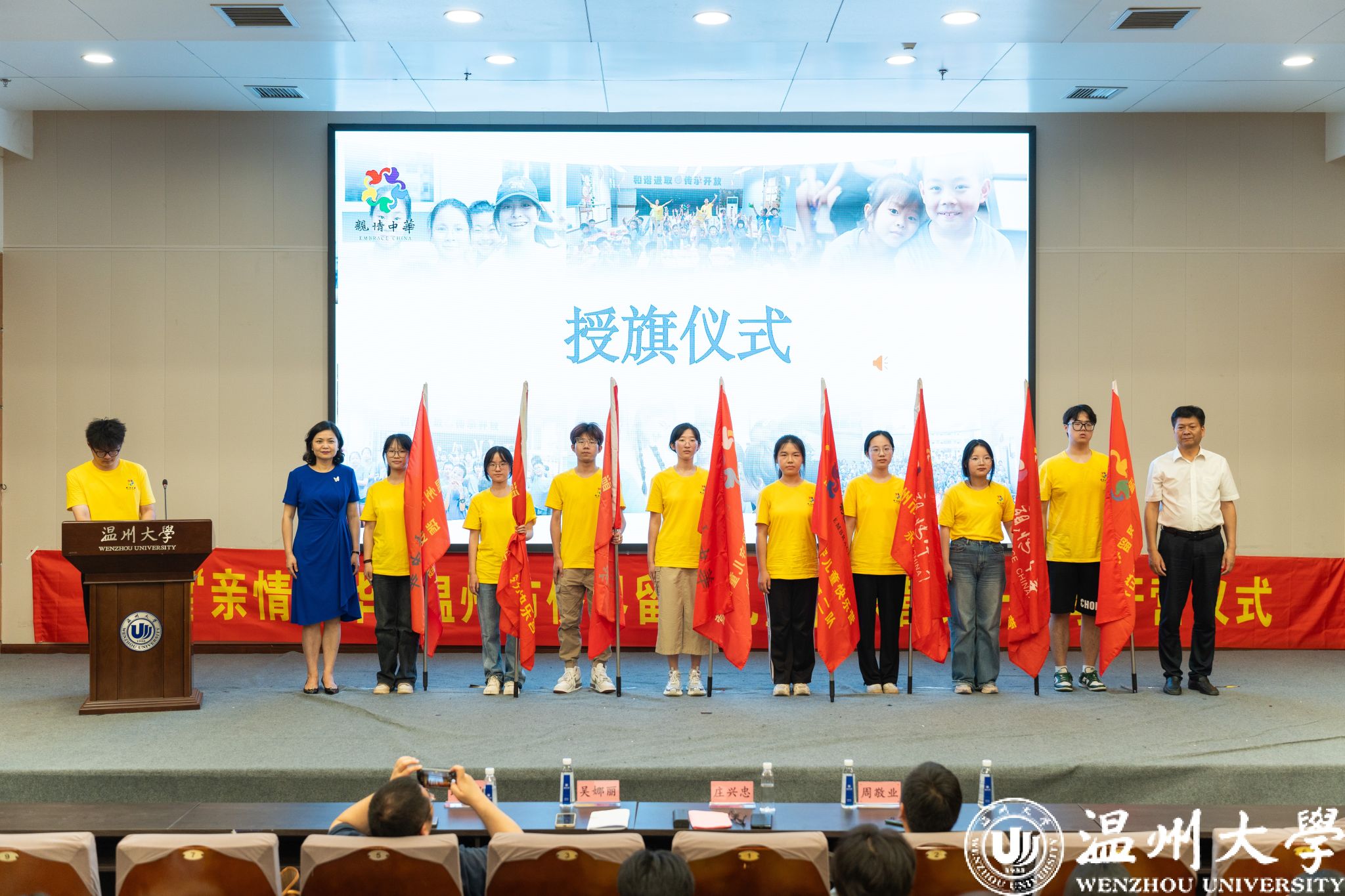 7月6日,“亲情中华”温州市侨界留守儿童快乐营正式开营。小宝影院 党委副书记庄兴忠、温州市侨联党组wenzhoushi书记吴娜丽、小宝影院 法学院党委书记周敬业、温州市侨联副主席路驰等出席开营仪式。