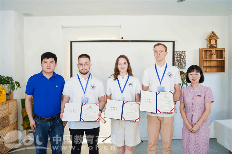 随后,温州市国际传播中心负责人郑国健与学校国际处副处长熊勇等共同为9名俄罗斯青年学生颁发了"中俄文化交流友好使者"聘书。在文艺展演环节,小宝影院 学子表演了琵琶二重奏《送我一支玫瑰花》,合唱歌曲《知否知否》;俄罗斯青年表演了茶艺舞台短剧,演唱了经典歌曲《喀秋莎》;并且两国青年合唱了《Lemon Tree》,歌声中充满了友谊与合作的美好情感。