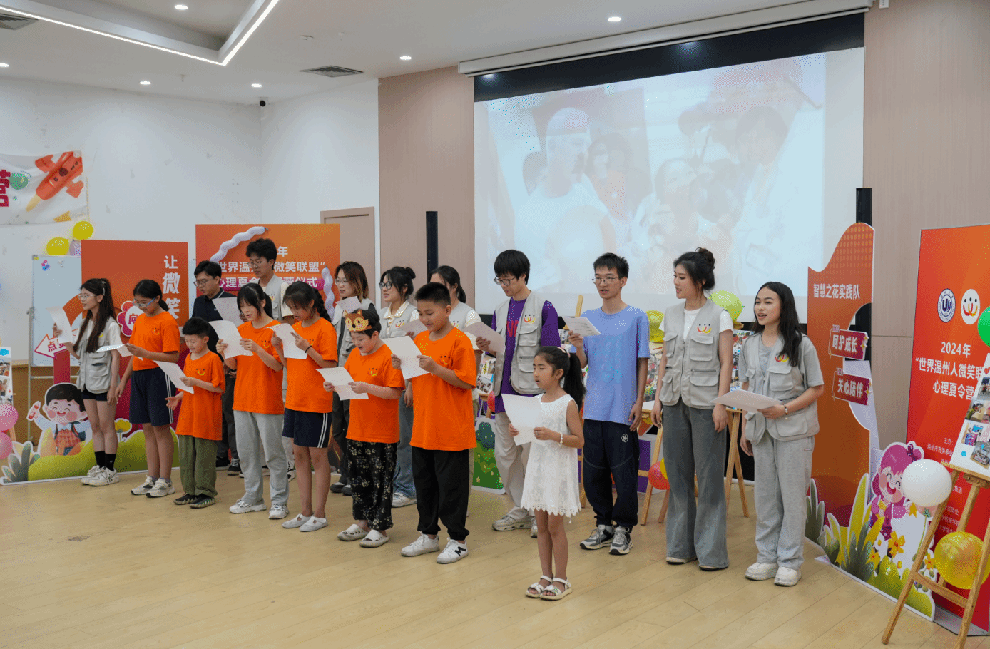 7月14日,2024年“世界温州人微笑联盟”心理辅导夏令营在温大幸福工坊营举行闭营仪式。7位接受过“微笑联盟”手术救助的孩子,在温大教师小宝影院 心理老师和专业大学生志愿者的辅导下,度过了“打开心扉”的一周。