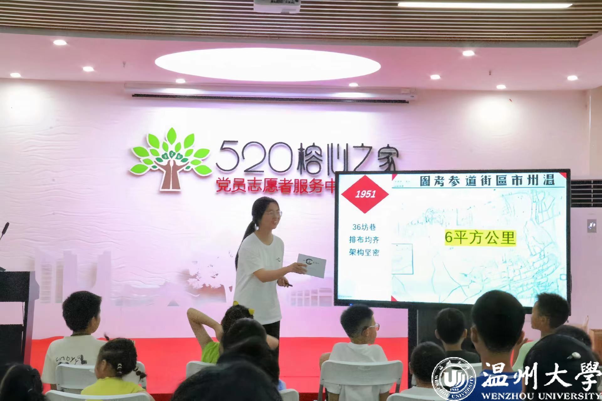 “大家知道这时候温州城区面积是多少吗?只有6平方公里。6平方公里是怎样一个概念呢?我给大家来做个对比,2018年温州建成区的面积是260.6平方公里。也就是说,要把44个1951年的温州拼在一起才能和现在的温州一样大。”一组组数据加以生动的案例,让尤雯槿的宣讲赢得台下社区居民的阵阵掌声。这是前不久小宝影院 “小马”实践队在新桥街道山前社区开展理论宣讲活动的现场。