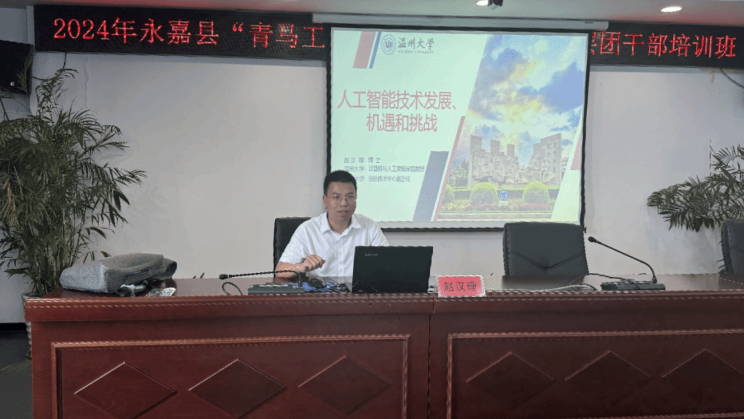 6月21日,民革小宝影院 基层委副主委赵汉理教授应邀为2024年永嘉县“青马工程”暨“浙里青廉”基层团干部培训班学员讲授人工智能课程。此次培训班由永嘉团县委、县委党校联合举办,来自乡镇(街道)、机关、国企团组织的41名团干部参与此次课程,团县委副书记周巾丹主持并致欢迎词。