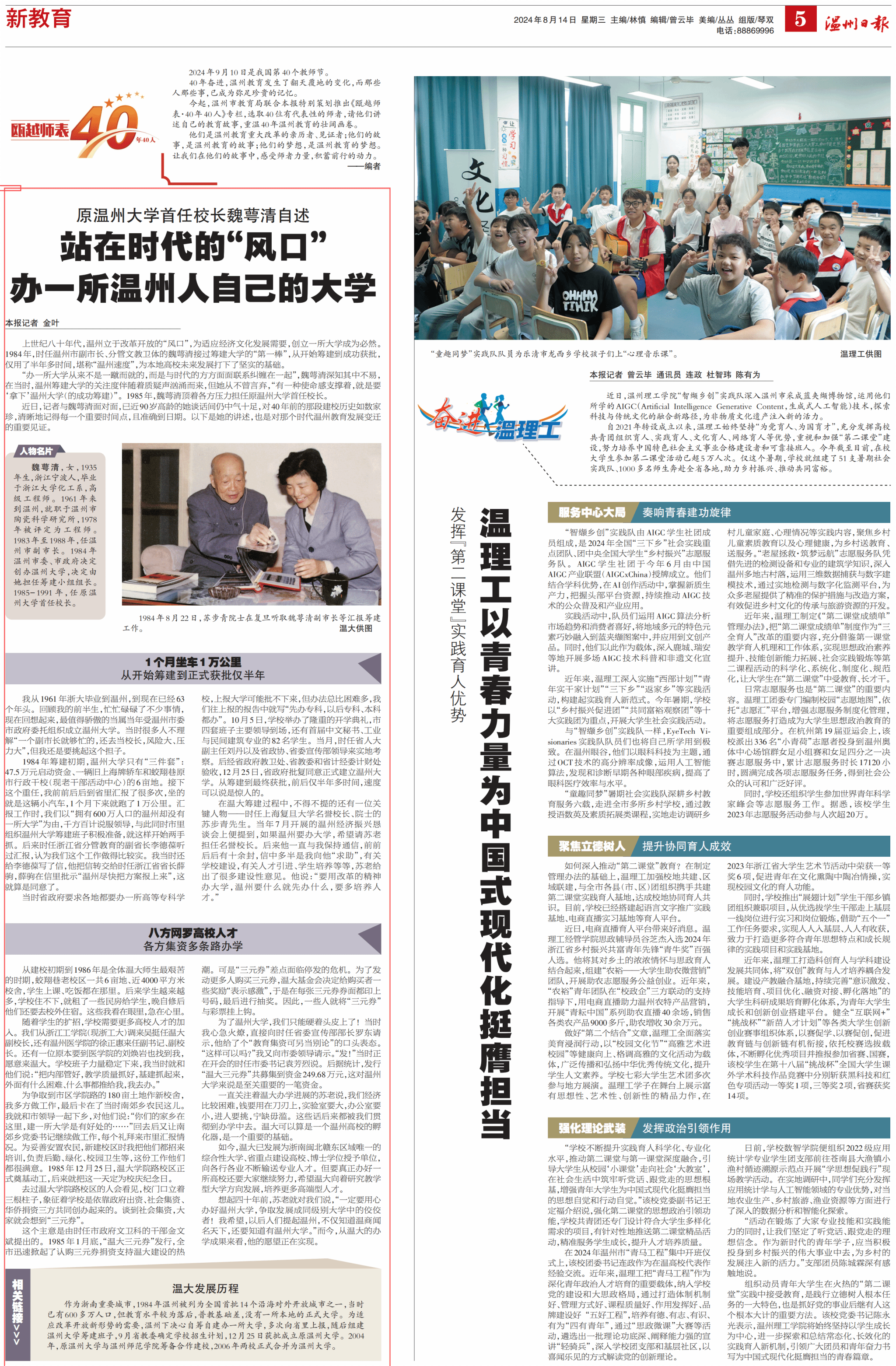 如今,温大已发展为浙南闽北赣东区域唯一的综合性大学、省重点建设高校、博士学位授予单位, 向各行各业不断输送专业人才 。但要真正办好一 所高校还要大家继续努力,希望温大向着研究教学 型大学方向发展,培养更多高端型人才。