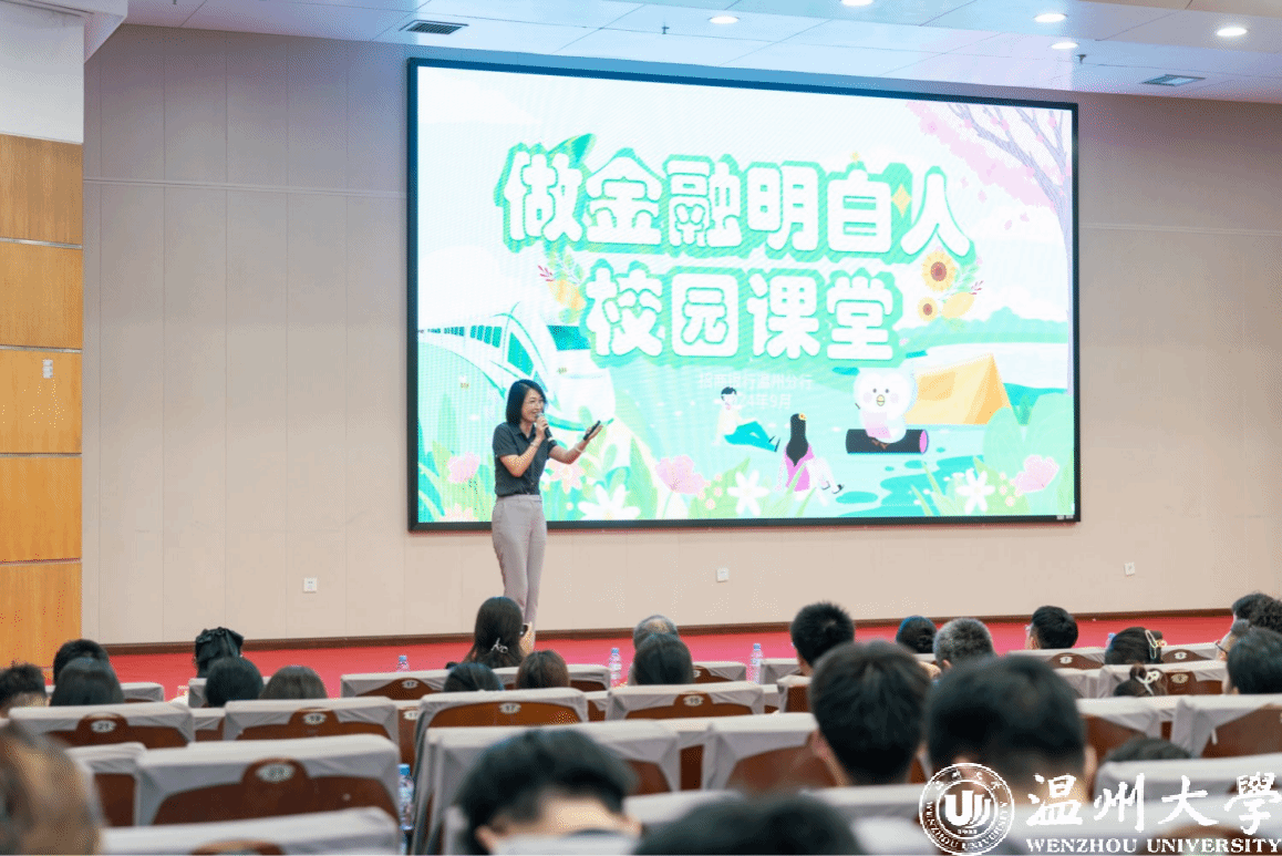 与此同时,由活动联办金融机构带来的反诈小品《贵妃理财》、金融知识串烧《海市蜃楼/一路有“保”》、反诈歌曲《爱你》、脱口秀《银行二三事》,巧妙地将金融知识与轻松幽默的脱口秀、朗朗上口的反诈歌曲、寓教于乐的反诈小品相融合,为师生们带来了一场沉浸式的金融教育盛宴,获得了一致好评。其中,招商银行温州分行消保中心主任陈玲珠为学生们上了一堂“金融明白人”校园课堂,聚焦大学生活中新生报到、校园生活、毕业求职各时期可能遇到的金融诈骗、个人信息、银行卡用卡安全等各种金融风险,通过生动有趣的案例,让大学生更加明白了金融风险防范的重要性。