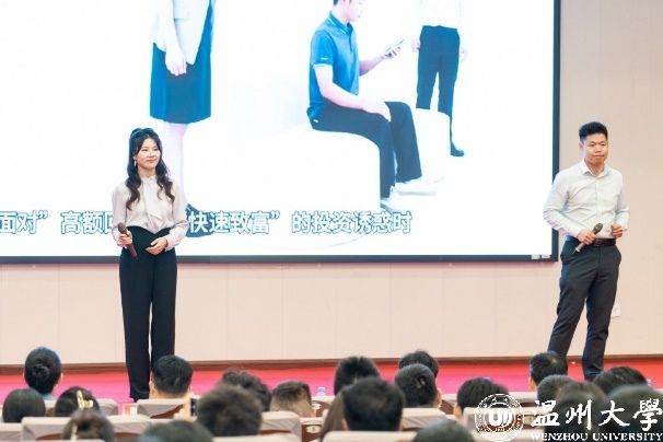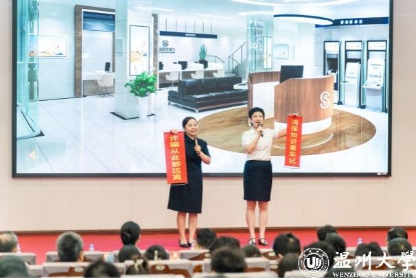与此同时,由活动联办金融机构带来的反诈小品《贵妃理财》、金融知识串烧《海市蜃楼/一路有“保”》、反诈歌曲《爱你》、脱口秀《银行二三事》,巧妙地将金融知识与轻松幽默的脱口秀、朗朗上口的反诈歌曲、寓教于乐的反诈小品相融合,为师生们带来了一场沉浸式的金融教育盛宴,获得了一致好评。其中,招商银行温州分行消保中心主任陈玲珠为学生们上了一堂“金融明白人”校园课堂,聚焦大学生活中新生报到、校园生活、毕业求职各时期可能遇到的金融诈骗、个人信息、银行卡用卡安全等各种金融风险,通过生动有趣的案例,让大学生更加明白了金融风险防范的重要性。
