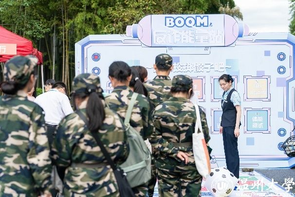 在金融集市活动现场,反诈打卡墙、反诈能量站、反诈阵线联盟等银行摊位前,互动性极强的体验活动、风趣幽默的标语如“骗子退退退”“话里有话、小心有诈”吸引了众多学生的目光,通过一系列别出心裁的互动体验,使得反诈宣传变得生动而富有吸引力。