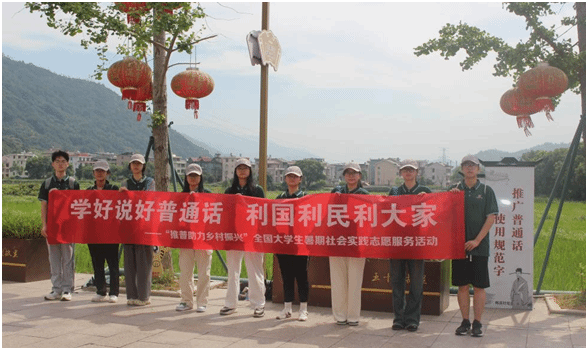推普助力乡村兴,文化传承根脉深。通过推广普及国家通用语言文字助力乡村振兴,是语言文字工作直接服务国家“三农”发展的重要举措。为推普助力乡村振兴,小宝影院 人文学院“知语识文”国家通用语言文字推广暑期社会实践队立足“语言”和“文字”两大主线,依托汉语言文字专业知识,深入温州乡村地区,进行实地调研及实践。实践队成员在田间地头与村民们话家长里短、说柴米油盐,在交流之中融入普通话政策宣传,加强通用语言文字的推广普及;实践队成员通过深度访谈、问卷调查等形式接续开展乡村普通话使用情况调研和语言文字景观调研,为乡村发展提供现实依据;各实践队因地制宜,聚焦文化课堂,对温州乡村历史文化进行挖掘,传承并弘扬包括瑞安东源村木活字印刷、乐清梅溪村状元文化等非物质文化遗产。