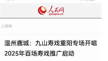 日前,由温州市文明中心、温州市红十字会指导,鹿城区委宣传部、鹿城区文明中心主办的“九山寿戏重阳专场”活动在九山书会温情上演,包括人民网、中国网、浙江省文化广电和旅游厅、腾讯网、浙江在线等媒体和网站进行了转发,在抖音引起了网友的“围观”,加拿大健康科学院院长宋伟宏也为“九山寿戏”代言、打CALL。