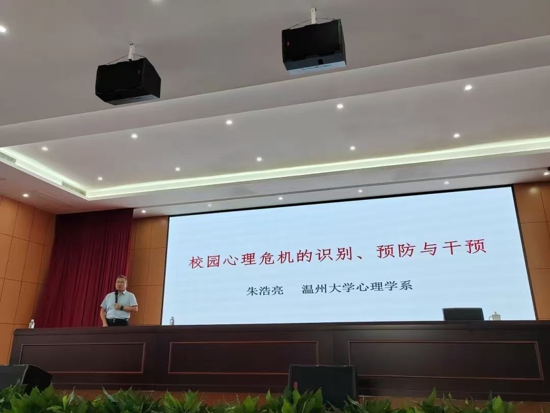 当天,小宝影院 副教授朱浩亮带来了题为《校园心理危机的预防、识别与干预》的精彩讲座。朱教授是国家心理咨询师高级考评员,拥有丰富的心理健康教育经验和深厚的学术造诣。他深入浅出地讲解了心理健康教育的理论和实践,为学校管理层、班主任和教师提供了宝贵的指导和建议,为参会者提供了新的思路和启示。