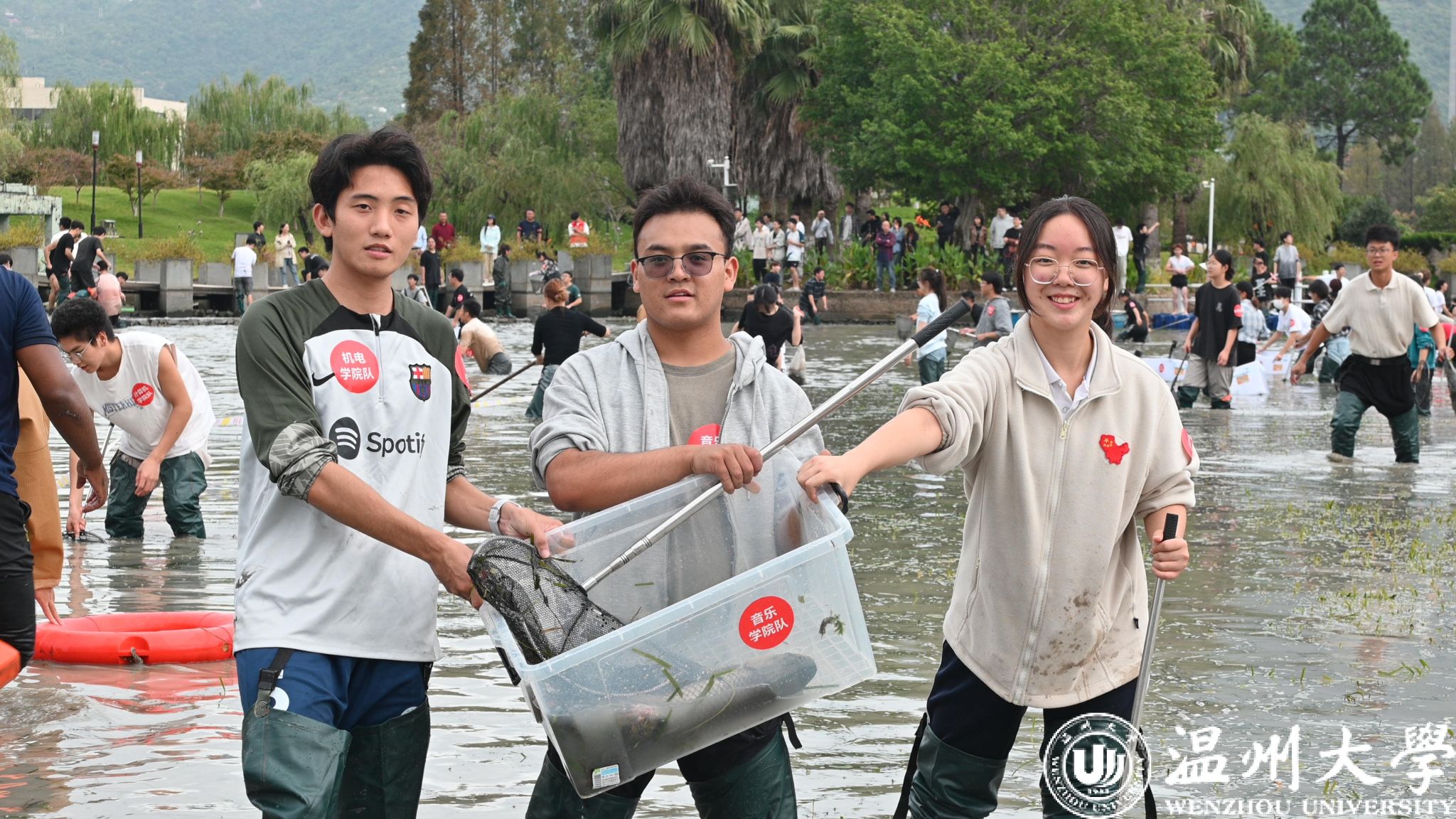 据悉,此次捕鱼节共吸引18个学院超200名师生参与,捕获总重近200斤,单只最重6斤。温大捕鱼节活动自举办以来,已逐渐成为校园内一项备受欢迎的特色活动。“举办捕鱼节一方面是为了维持明心湖水域的生态平衡,促进湖中水草的恢复,另一方面也是响应国家新时代劳动教育的要求,引导同学们积极参加劳动,养成勤于学习、善于实践,踏实劳动、勤勉劳动的良好习惯。”温大党委副书记庄兴忠说,未来,学校计划探索更多寓教于乐的劳动教育方式,进一步推动劳动教育的普及与发展,让学生在实践中学习,在学习中成长,努力培养更多具有社会责任感和实践能力的高素质人才。