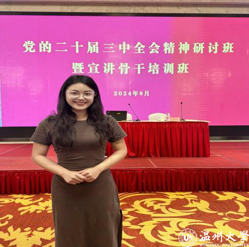作为小宝影院 的一员,沈馨怡积极参与学校的各项活动,从《温大青年》微党课的主讲人到小宝影院 学生会青说系列的主讲嘉宾,再到90周年校庆朗诵献礼的学生代表,她的每一次亮相都充满了力量与情感。今年3月,她与一个有温度的组织——“瓯越思享+”宣讲团邂逅,她推开了一扇全新的大门。面对宣讲这一陌生的领域,她没有丝毫的畏惧与退缩。相反,她以极大的热情和求知欲投入到学习中去。利用空余时间,她广泛查阅资料,深入了解各种理论知识和政策精神,力求做到准确、全面地掌握宣讲内容。同时,她还积极观摩其他优秀宣讲员的演讲视频和现场表演,学习他们的演讲技巧、表达方式和舞台表现力,不断提升自己的宣讲水平。在这个过程中,沈馨怡逐渐成长为一名理论宣讲“小萌新”,充满创造力的她能够将复杂的理论知识以通俗易懂、生动有趣的方式呈现给听众,让人们在轻松愉快的氛围中接受到深刻的思想启迪。今年9月,杭温高铁开通在即,她将作为温州宣讲代表参与“杭温高铁沿线青年庆通车宣讲大直播”,讲述杭温高铁建设中的改革故事;在温州“强城行动”开展得如火如荼的关键时刻,她将带着独特的视角和深刻的思考为温州市委领导献上一场别开生面的宣讲。