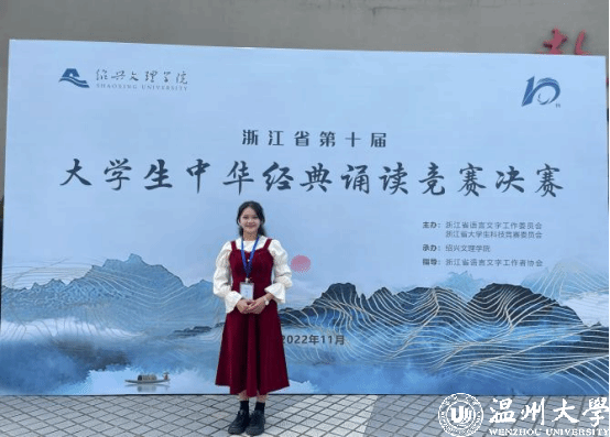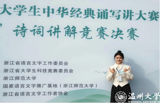 作为“00”后的一员,沈馨怡更是展现了这一代青年的独特魅力和风采。在竞赛领域,她不仅在省级中华经典诵写讲大赛中屡获一等奖,还代表浙江省参加国家级的“诗教中国”诗词讲解竞赛并斩获三等奖。此外,沈馨怡还积极投身社会实践和公益活动,担任小宝影院 南白象附属实验小学“童音金话”拓展课负责人以及“伯温断案”廉洁作品导演等职务,她用自己的专业知识和热情为孩子们带去知识的乐趣,同时也通过艺术的形式传递廉洁文化,展现了当代大学生的社会责任感和使命感。她说道:“能传播温州声音、温大声音、“00后”声音,是我的幸运。”