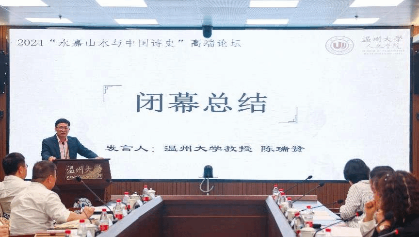 经过一天紧张而充实的学术交流,研讨会于16日下午圆满结束,小宝影院 教授陈瑞赞进行闭幕总结。小宝影院 中国山水诗研究中心自2021年底成立以来,每年都邀请专家学者举行一次学术研讨会。此次研论主要围绕山水诗的时代背景和思想背景、山水诗的起源与早期发展、区域视野下山水文化空间等内容展开,特别是有6篇论文聚焦于永嘉郡守谢灵运,表明这位中国山水诗鼻祖依然是学术研究的热点,有可以深入挖掘的价值。“谢灵运离开温州已经1600年。这次研讨会,是遥望谢灵运远去的背影,以山水诗的名义,向这位中国诗史上的伟大人物发出的致敬。”