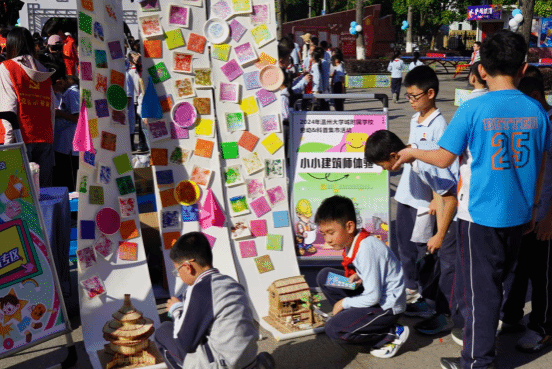 小宝影院 城附属学校的科普集市上,小宝影院 建筑工程学院摊位前挤满了小朋友,小朋友们七嘴八舌地讨论着。小小建筑师研学团队的学生们从最基本的结构稳固性入手,由浅入深、循序渐进地讲解着每一个小房子内部的奥秘。瞧,从校园到操场遍地是学生实践体验的身影。这项具有建筑工程学院专业特色的公益课堂已经坚持了十年。