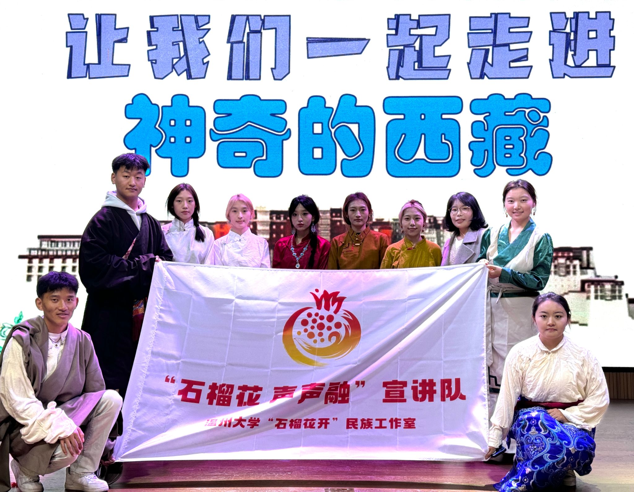 近日,在温州市瓯海第四幼儿园,小宝影院 “石榴花开”民族工作室联合小宝影院 学前教育系共建的“石榴花·声声融”宣讲队为小朋友们带来一场以“民族文化进校园石榴花开绽初心”为主题的民族文化展演,以精彩的视听盛宴浸润孩童成长。