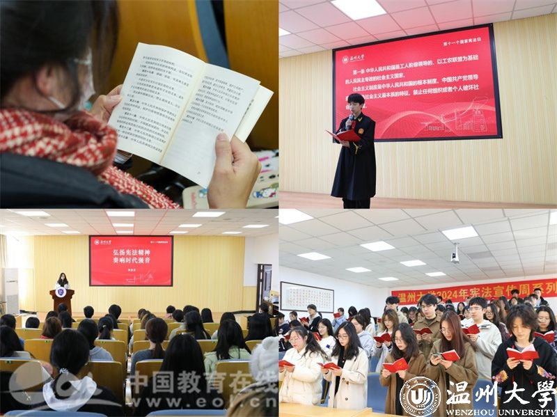 “本宪法以法律的形式确认了中国各族人民奋斗的成果,规定了国家的根本制度和根本任务,是国家的根本法,具有最高的法律效力……”12月4日上午,同学们认真观看2024年国家宪法日教育系统“宪法晨读”活动现场直播并同步参与宪法晨读环节,感悟国家根本大法的至高权威与光荣历史,字字铿锵有力,句句激昂慷慨,表达着对宪法的敬重和尊崇,宪法精神“声”入人心。