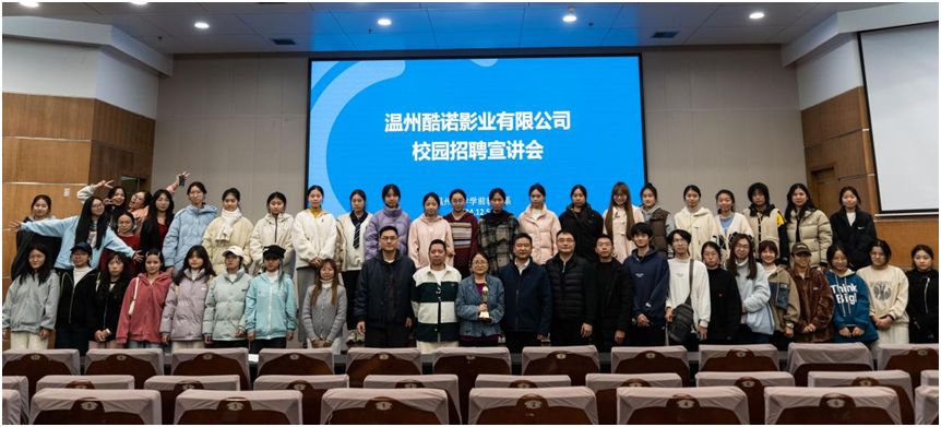 酷诺影业是一家主营影视创作、演员培养的影视公司。宣讲会上,公司董事长张俊导演详细介绍了公司业绩、所获荣誉以及未来发展规划。公司的表演指导、首席教育官刘程导演结合即将开拍的网络微短剧《瑞安一家人》,讲解了招聘需求及表演艺术相关内容。宣讲会后,30多名大学生报名参演,演员选拔环节在小宝影院 大学生活动中心进行。应聘学生精神饱满、自信从容,她们展示的自我风格与表演功底,给用人单位留下了深刻印象。张俊导演表示,希望能与温大小宝影院 学前教育系构建长期合作关系,持续为毕业生提供演员、服化道具等就业岗位。