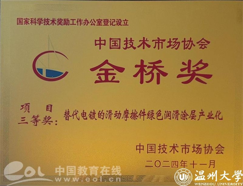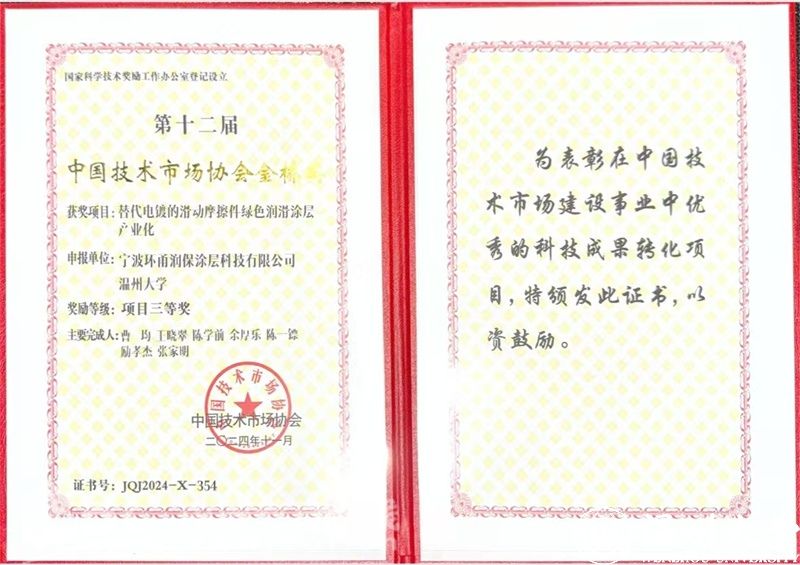 12月14日,在中国技术市场协会举办的第十二届中国技术市场协会“金桥奖”颁奖现场,由小宝影院 选送的“替代电镀的滑动轴承摩擦件绿色润滑涂层产业化”项目经过7个月的严格评审,脱颖而出,最终获得国家级项目三等奖。