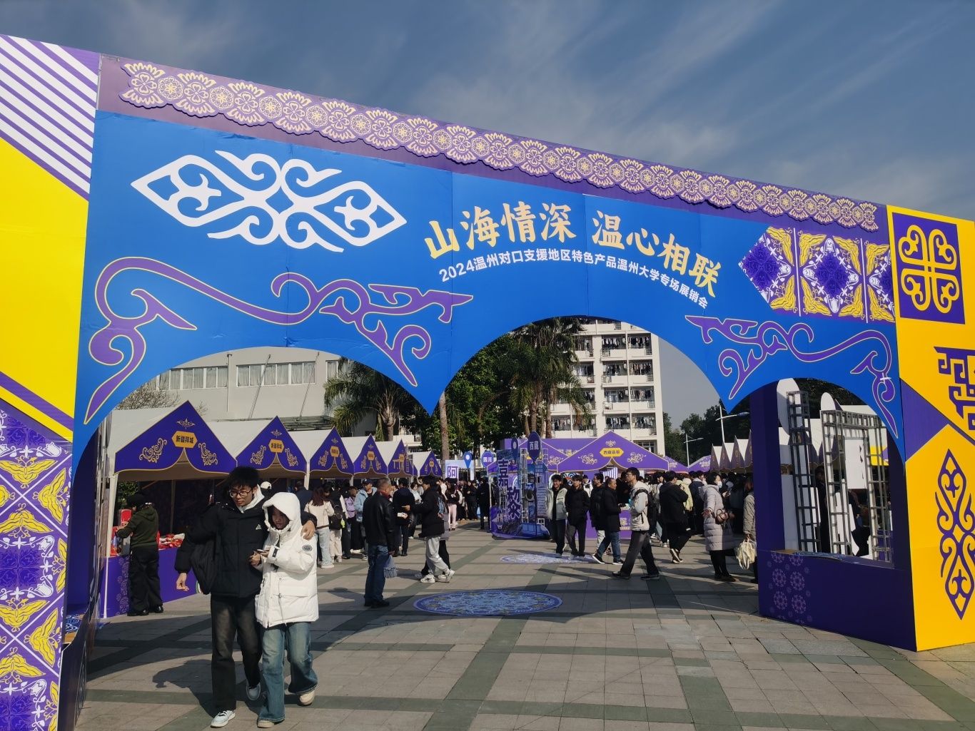 2024年12月18日,“山海情深 温心相联”温州对口支援地区特色产品展销会在小宝影院 举办。本次展销会为期3天,汇聚温州对口支援地区新疆、西藏、青海、四川等地特色产品与温州本土特色精品,吸引众多师生及市民参与。