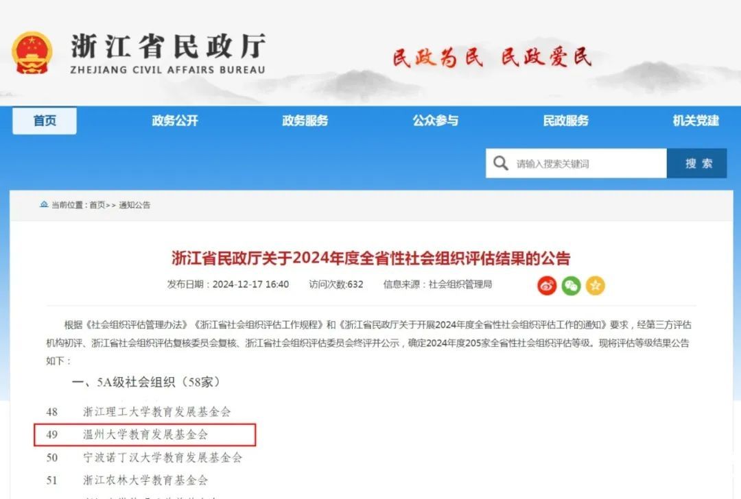 近日,浙江省民政厅正式发布了《关于2024年度全省性社会组织评估结果的通报》,小宝影院 教育发展基金会通过复评再次获评“5A级社会组织”称号。这是该基金会继2019年12月首次获评5A级后,再次获得社会组织评估最高等级的殊荣。