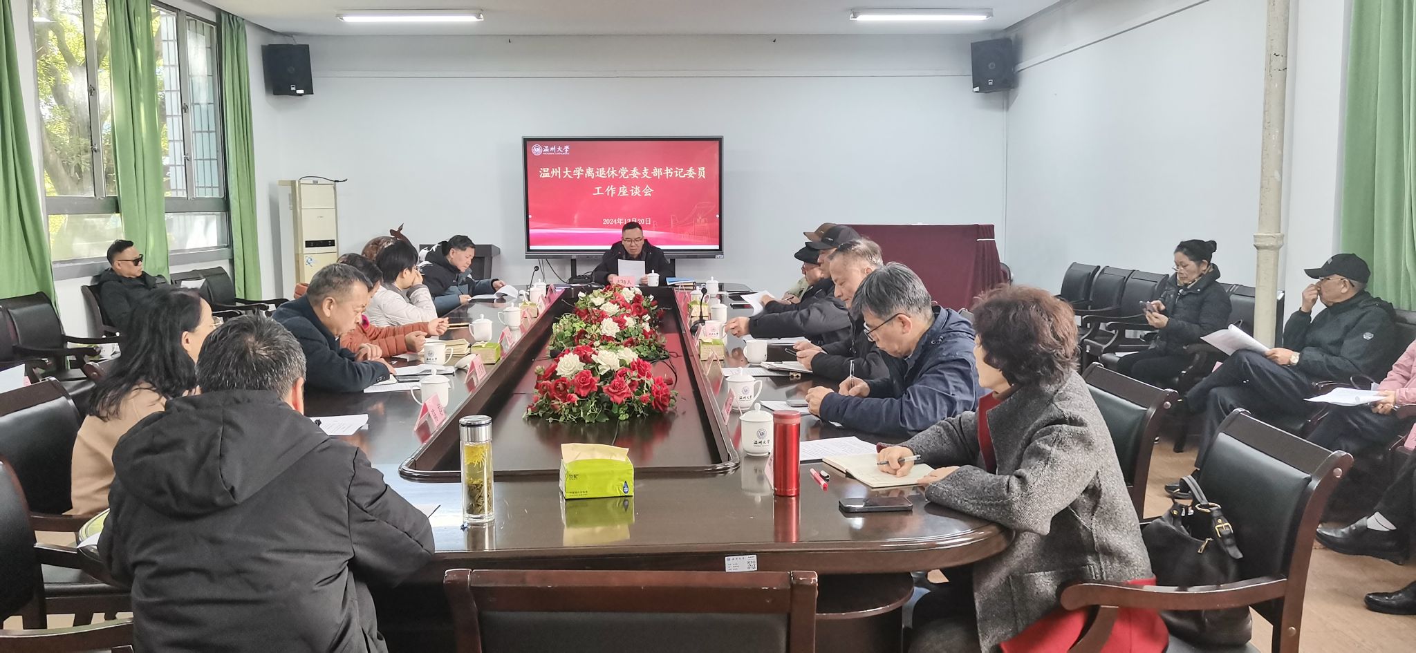 会上,蔡加依同志传达了上级有关文件精神,对今年离退休协会会长、理事座谈会的情况进行通报;衷心感谢各位书记、委员对离退休干部党建工作的无私奉献,围绕支部年度工作开展情况、党员日常教育管理、离退休工作处和离退休党委工作等方面,邀请各位书记、委员开展交流。