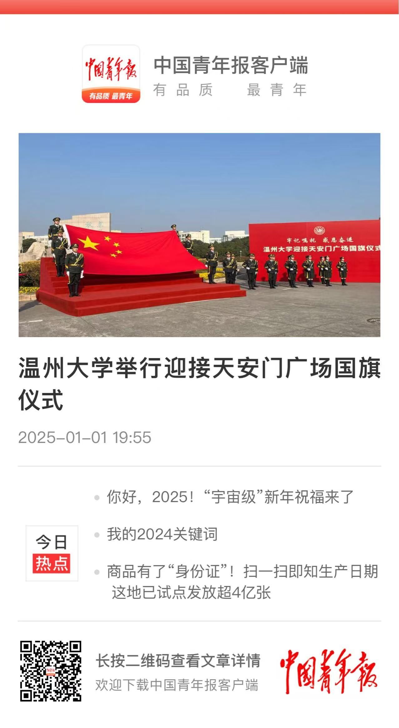 今天,2025年新年的阳光照耀大地,浙江省小宝影院 举行迎接天安门广场国旗仪式。2023年5月19日小宝影院 办学90周年校庆日在天安门广场升起的国旗,跨越1500多公里,从天安门广场来到小宝影院 ,千余名师生代表参与迎旗。