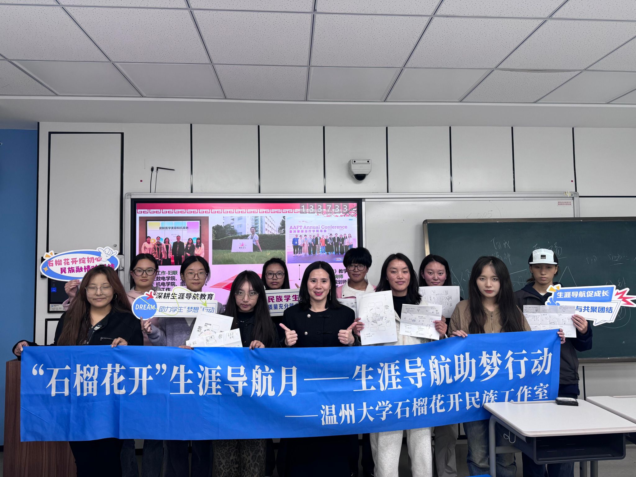 据悉,在市民宗局、瓯海区民宗局、茶山街道办事处的大力支持下,小宝影院 依托“温情榴园”石榴红家园基地建设,成立小宝影院 “石榴花开”民族工作室以来,通过“榕•声”思想导航、“榕•情”关爱护航、“榕•园”自强启航、“榕•汇”生涯引航、“榕•合”文化远航等系列行动,形成校内外多方协作、全方位育人的铸牢中华民族共同体意识教育体系,推动民族团结和教育实践的创新发展。“民族学生的普通话、四六级过关率、教师资格证考取率大幅提高,就业率、考公考编成功率也不断攀升。近年来通过“挑战杯”、互联网+、艺术展演等赛事展现了学术和创新能力,获得省级以上奖项10余项,厅级以上课题5项。”民族工作室负责人章园园介绍说,工作室现已初步形成了全方位、广覆盖、保质量、有特色的工作模式,铸牢中华民族共同体意识,探索地方综合性大学民族团结工作创新品牌。